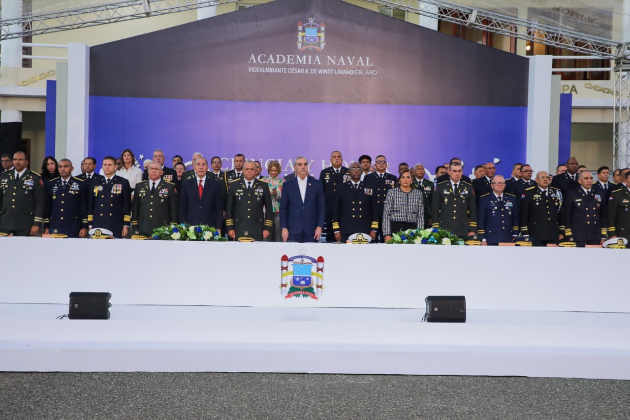 Santo Domingo. – El presidente Luis Abinader encabezó la septuagésima cuarta (LXXIV) graduación de Damas y Caballeros Guardiamarinas, que se suman a la defensa de las costas dominicanas, la soberanía e independencia nacional, como licenciados en Ciencias Navales y Oficiales del Cuerpo de Comando.