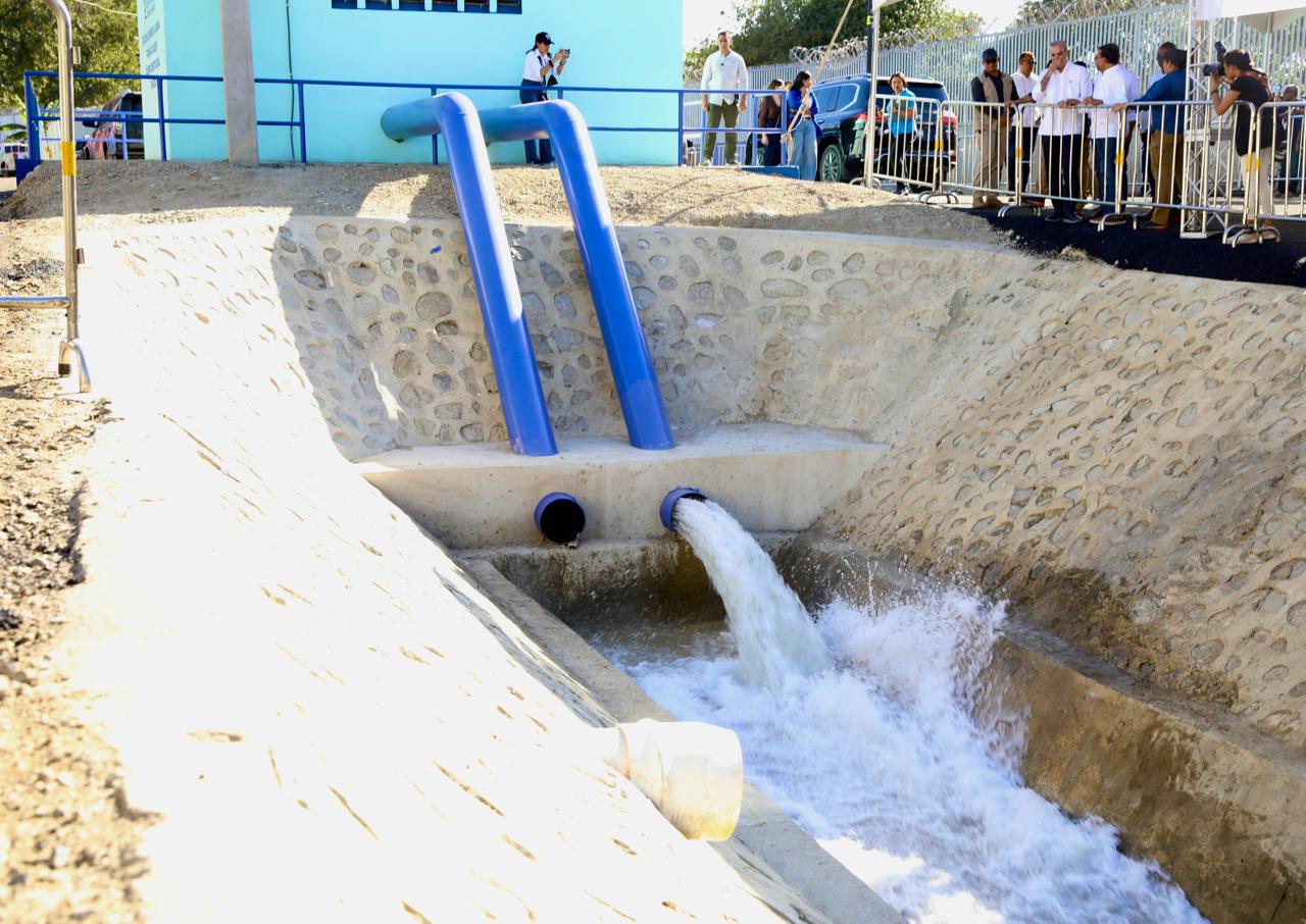 La obra de toma del canal en el río Dajabón se construyó en hormigón armado protegida con muros engavionados, con un canal de llamada en tubería de 60 pulgadas, compuerta de control y parrilla de protección, interconectando al canal con tuberías de 48 pulgadas. Para el bombeo, precisó, se habilitó una estación central con un cárcamo de 9 metros de profundidad donde se colocó un novedoso sistema compuesto por 2 electrobombas tipo sumergible con capacidad de 12,000 GPM cada una.