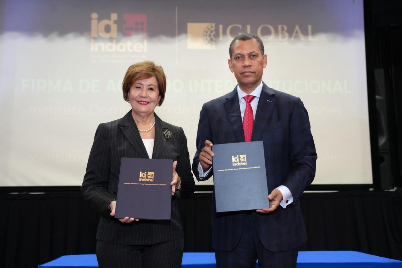 El convenio fue formalizado por el presidente del Consejo Directivo del INDOTEL, Guido Gómez Mazara, y la rectora del IGLOBAL, Josefina Pimentel, como parte de una alianza estratégica orientada al fortalecimiento del capital humano y la transformación digital del país.