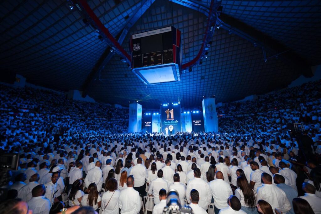 El mandatario fue ovacionado como líder del PRM, ante un abarrotado escenario de la Arena del Cibao, en el que miles de perremeistas celebraron los 11 años de fundación del PRM, y manifestaron su entusiasmo por continuar cambiando y desarrollando al país.
