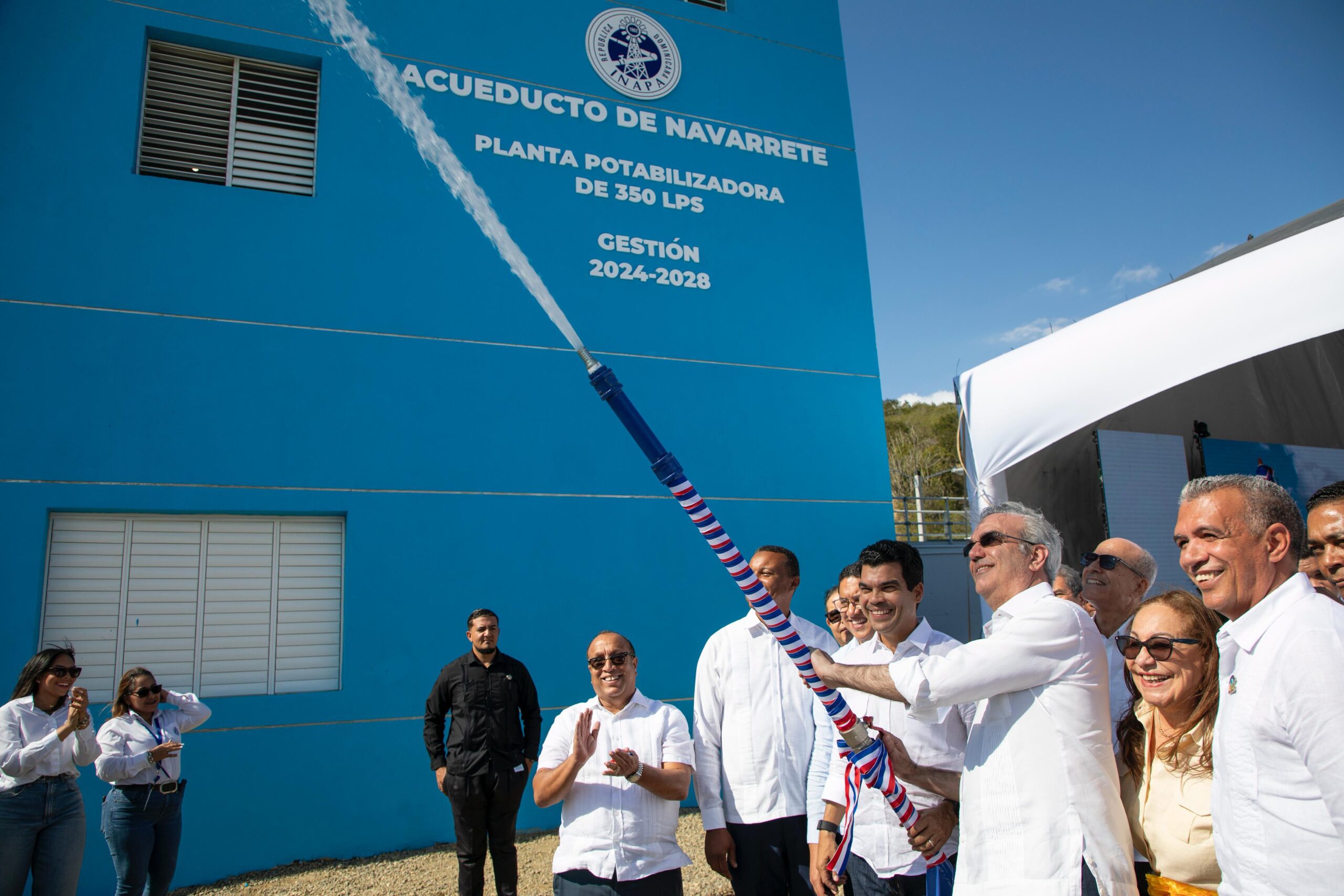 Navarrete, Santiago.– El presidente Luis Abinader y el director ejecutivo del Instituto Nacional de Aguas Potables y Alcantarillados (INAPA), Wellington Arnaud, inauguraron este miércoles el anhelado acueducto del municipio Navarrete, un sistema de agua potable moderno y de alta capacidad que beneficiará a más de 150 mil habitantes.