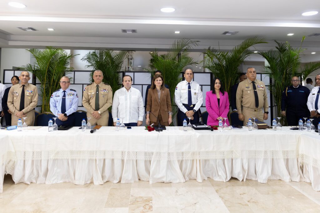 A la vicepresidenta le acompañaron la ministra de Interior y Policía, Faride Raful; el ministro de la Presidencia, José Ignacio Paliza; el ministro de Defensa, teniente general Carlos Antonio Fernández Onofre; y el director general de la Policía Nacional, mayor general Andrés Modesto Cruz Cruz, quien participó por primera vez de manera presencial en estas reuniones desde su designación en el cargo.